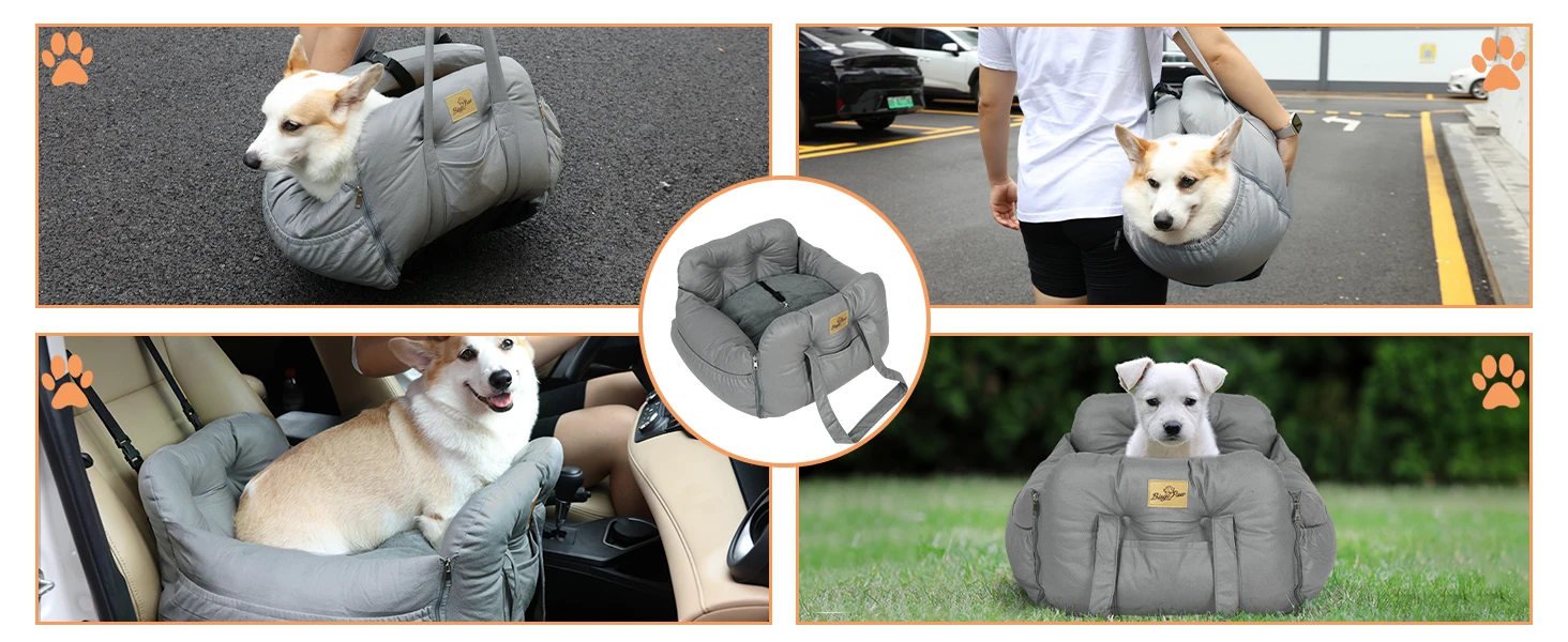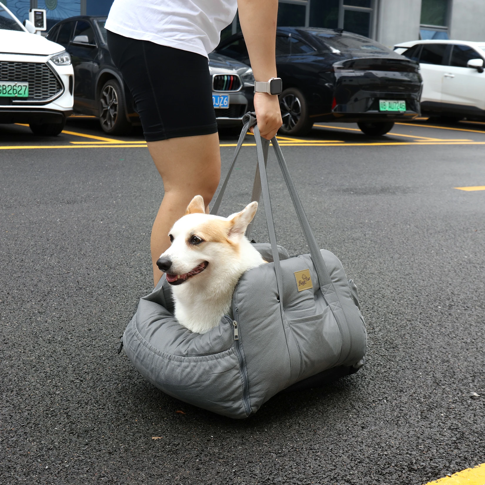 【Functional Pet Bed】Not only used this bed as a car seat bed, carrier bag but also a puppy bed in the home, giving pets peace of mind anda comfortable experience, the size measuring 25.1”by 16.9”by 11”, will fits most small- to medium-sized dogsand cats with max load of 31 lbs, enables you spenda more enjoyable journey with your pets if you use it as car carrier bag