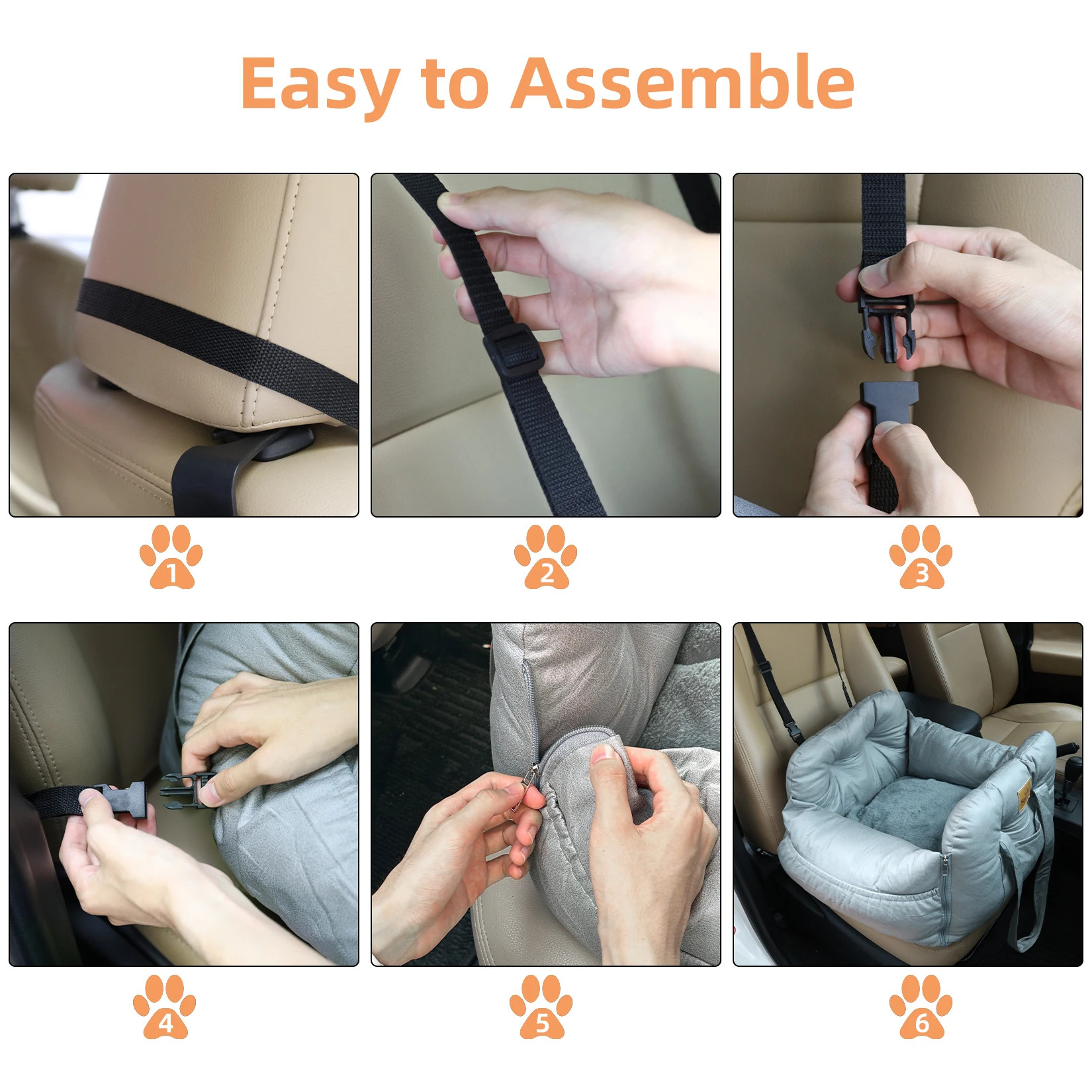 【Pet-friendly Design】The bed and cushion are filled with enough PP cotton for extra support, providing a sense of comfort and security for petswhen they seat or rest on, not easy to sink down, helps ease dog’s anxiety while on the road, built with strong seatbelt to attach to the seat, effectively keep puppies safely restrained in the carand prevent from running